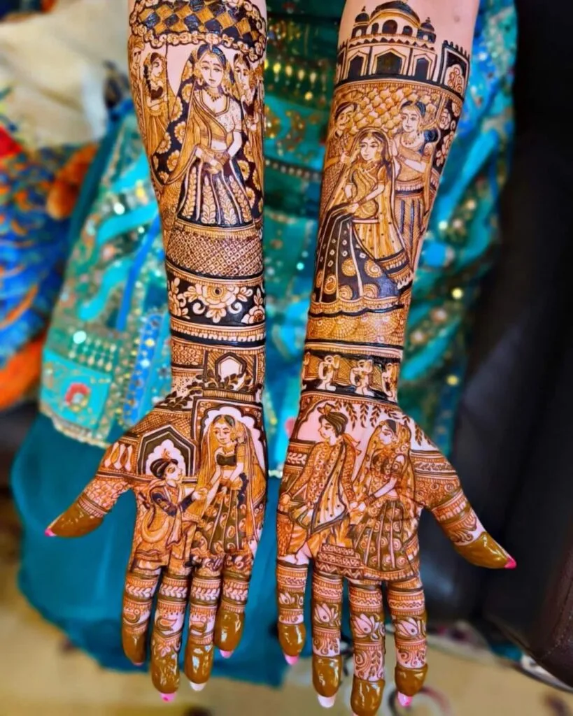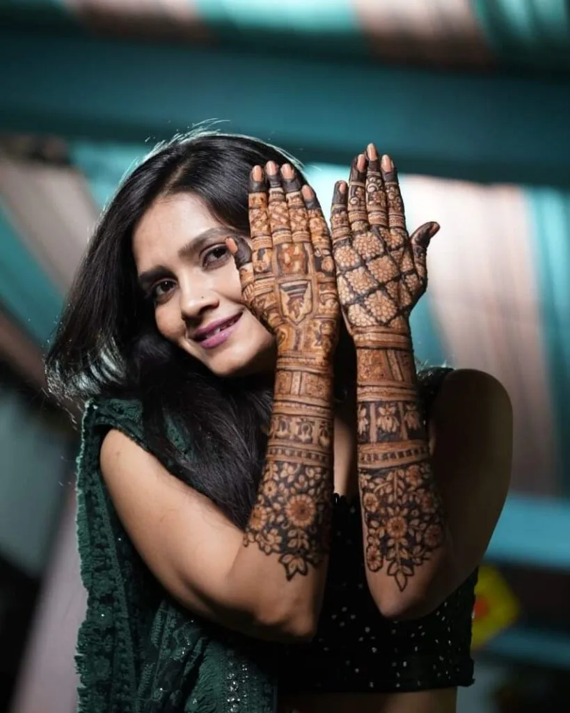 Indian Mehendi designs frequently incorporate various flowers like roses, lotus, and marigolds…….